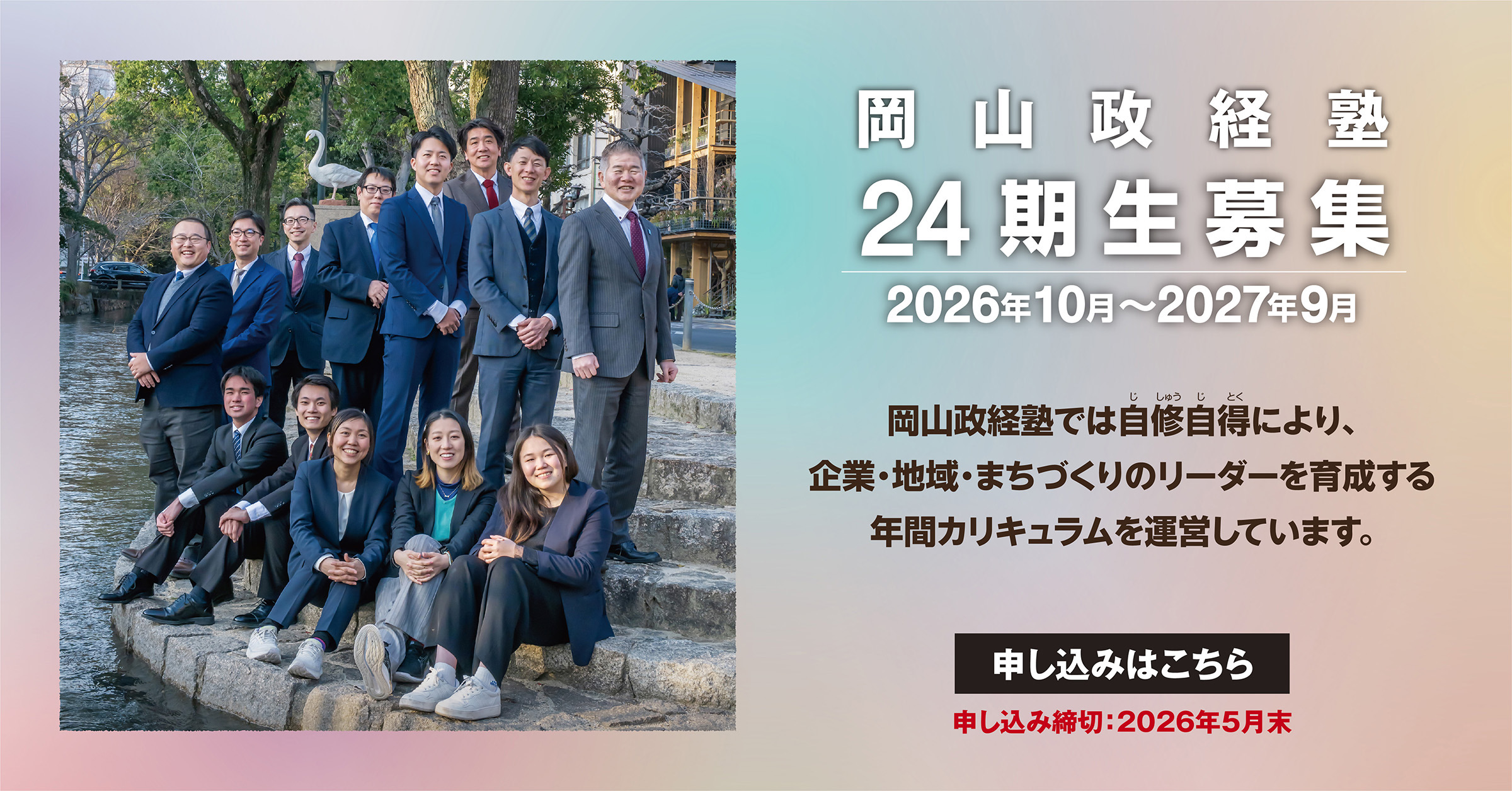 岡山政経塾では設立以来、多くの首長、議員をはじめ企業、地域、まちづくりのリーダーを数多く輩出してきました。